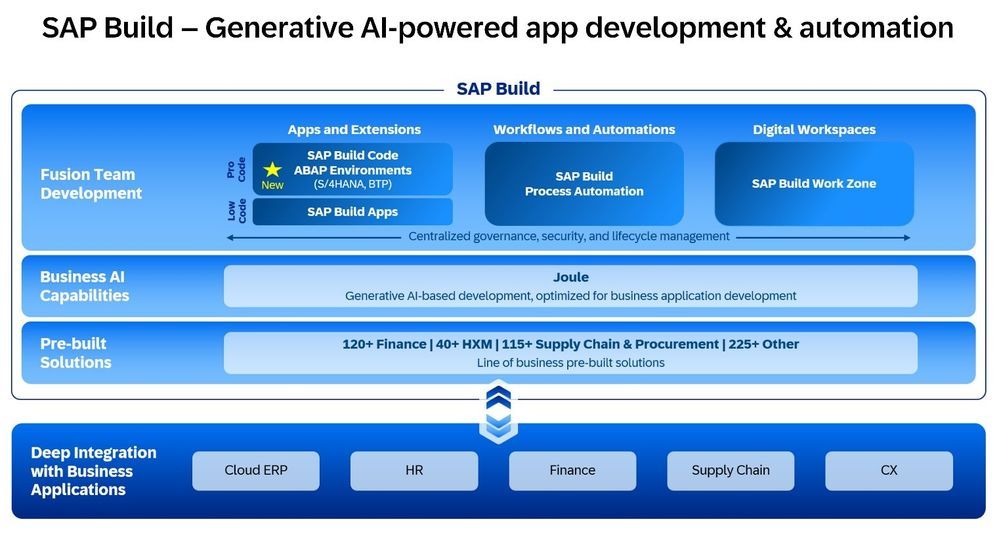 Governance: SAP Build helps prevent uncontrolled growth by providing a standardized framework for side-by-side extensions